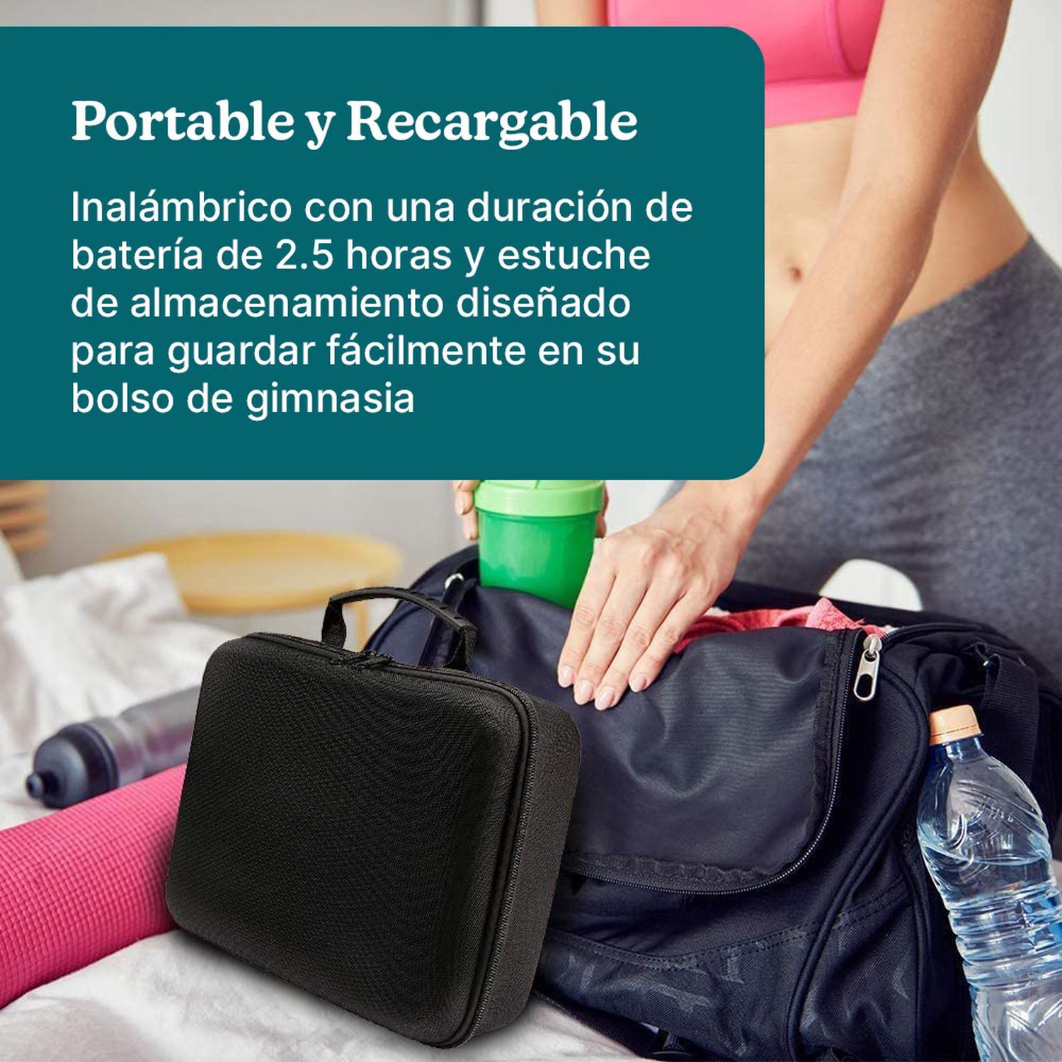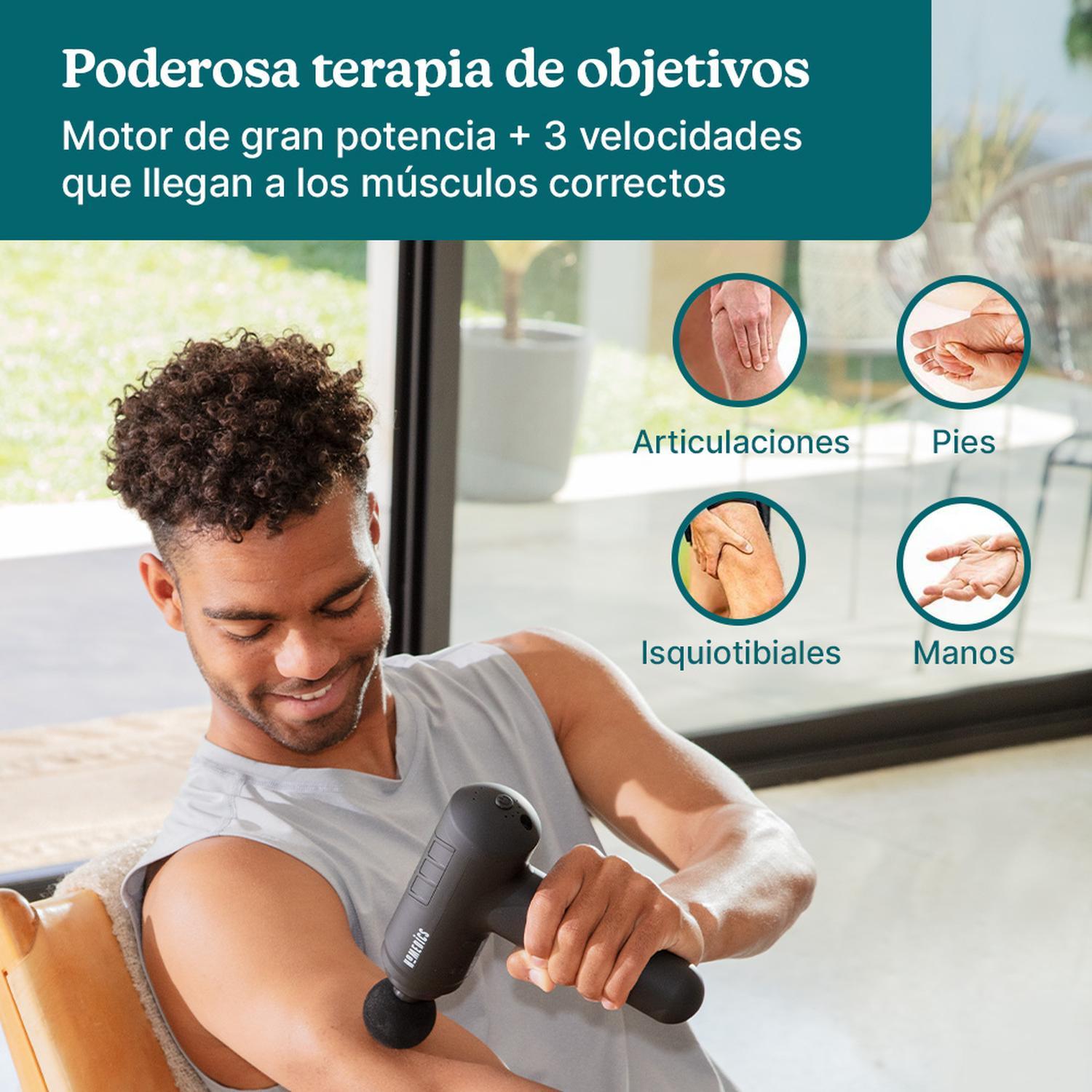 Prepárate, rinde mejor y recupérate más rápido con el Masajeador de Percusión Homedics Therapist Select Alta Intensidad HHP-715. Este potente masajeador de percusión ofrece un tratamiento muscular profundo, utilizando movimientos rápidos y repetitivos para disolver la tensión. Elige entre 3 niveles de intensidad para una personalización completa. Su diseño inalámbrico garantiza máxima comodidad y portabilidad. Incluye 4 accesorios de calidad profesional diseñados para un alivio preciso en puntos específicos. ¡Tu recuperación en tus manos! Masaje de percusión de calidad profesional Controles LED con un botón táctil 3 intensidades 4 accesorios intercambiables Indicador de luz de carga de la batería Batería recargable: tiempo de ejecución de 2,5 horas, tiempo de carga de 3,5 horas Estuche de almacenamiento incluido