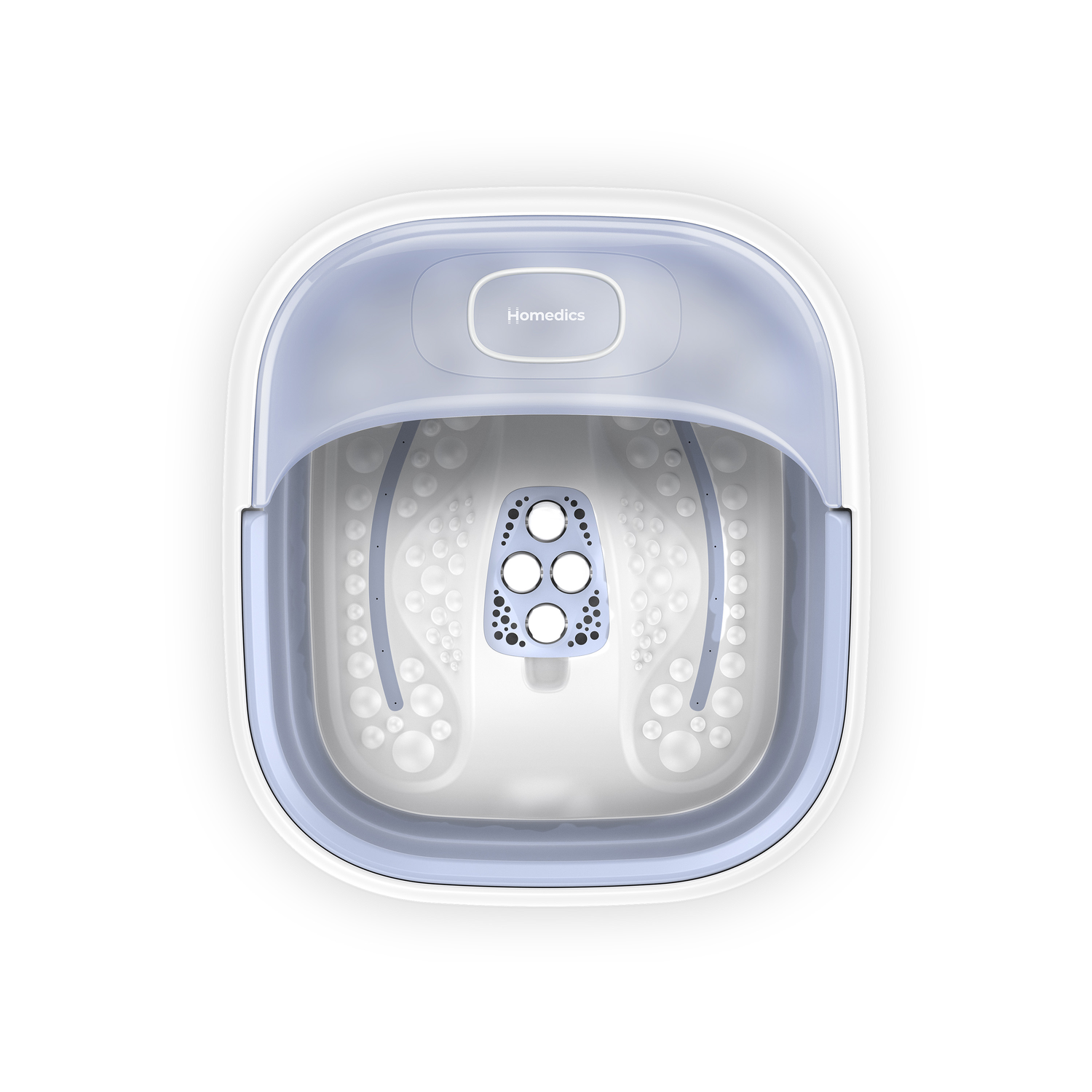 Relaja y renueva tus pies con la Tina para Pies HoMedics Smart Space Essential con Burbujas y Calor FB-72. Su diseño patentado para ahorrar espacio la hace perfecta para cualquier hogar. Disfruta de burbujas vigorizantes y un sistema de mantenimiento de calor que mantiene el agua tibia por más tiempo. Es segura para usar con tus sales de baño favoritas e incluye 2 sobres de regalo. Su base ergonómica con nodos elevados y centrales giratorios te permite un masaje que alivia el dolor. Además, cuenta con un asa de transporte conveniente y un sistema de bloqueo de seguridad. Diseño patentado para ahorrar espacio Sistema de bloqueo de seguridad para evitar que se pliegue durante su uso Seguro para usar con tus sales de baño favoritas Mantenimiento de calor Incluye 2 sobres de sales de baño Base ergonómica para los pies - Frota tus pies hacia adelante y hacia atrás sobre los nodos elevados y los nodos centrales giratorios para un masaje que alivia el dolor Asa de transporte conveniente